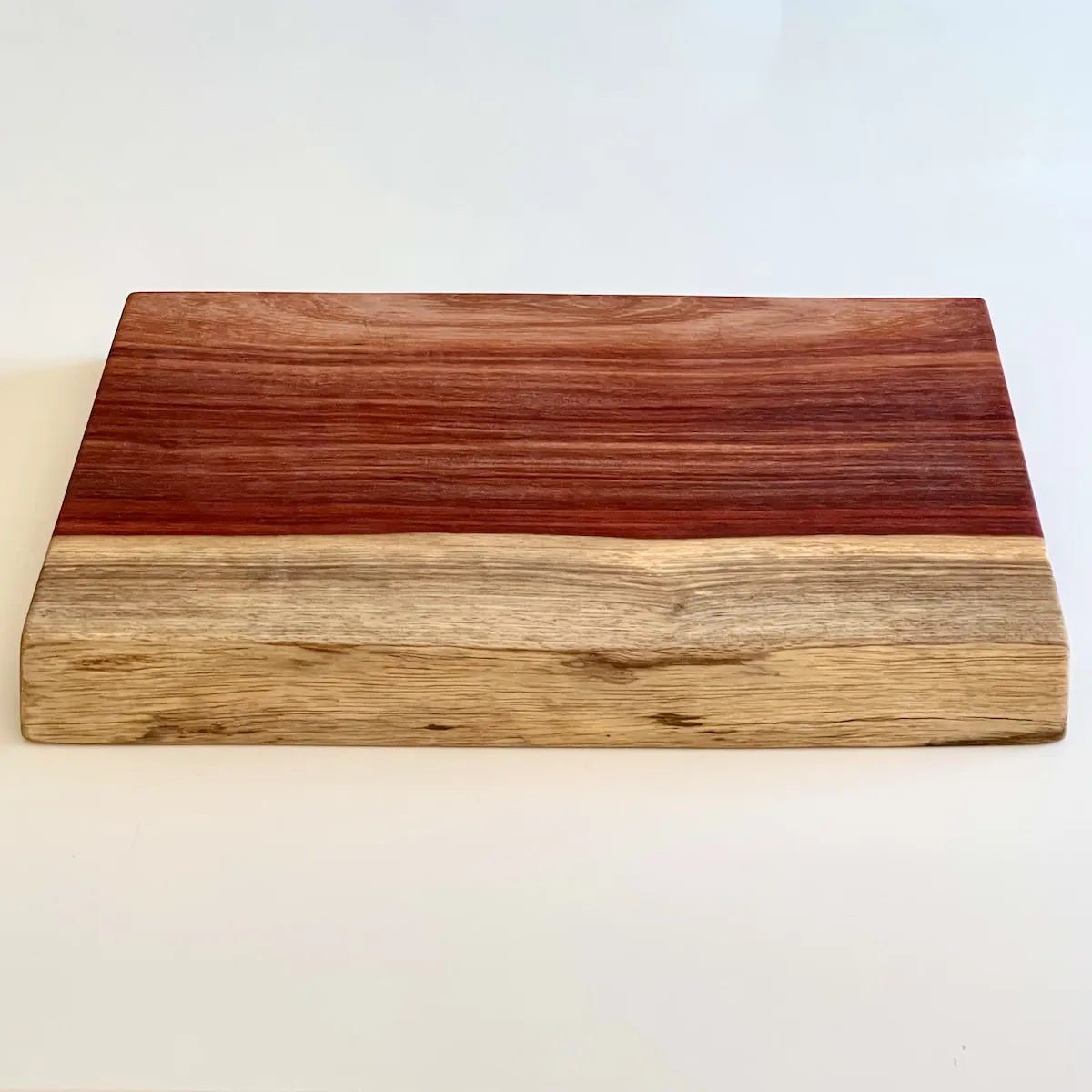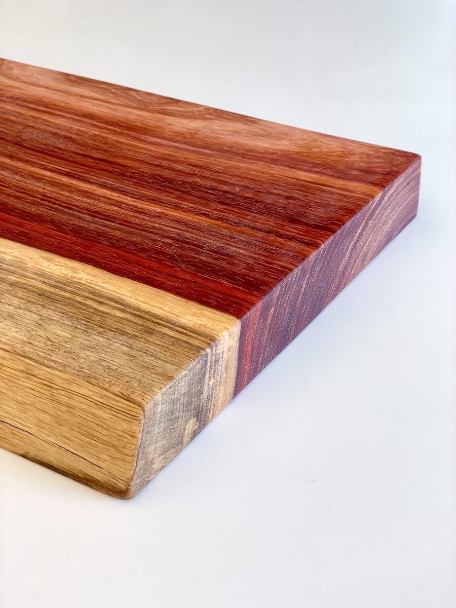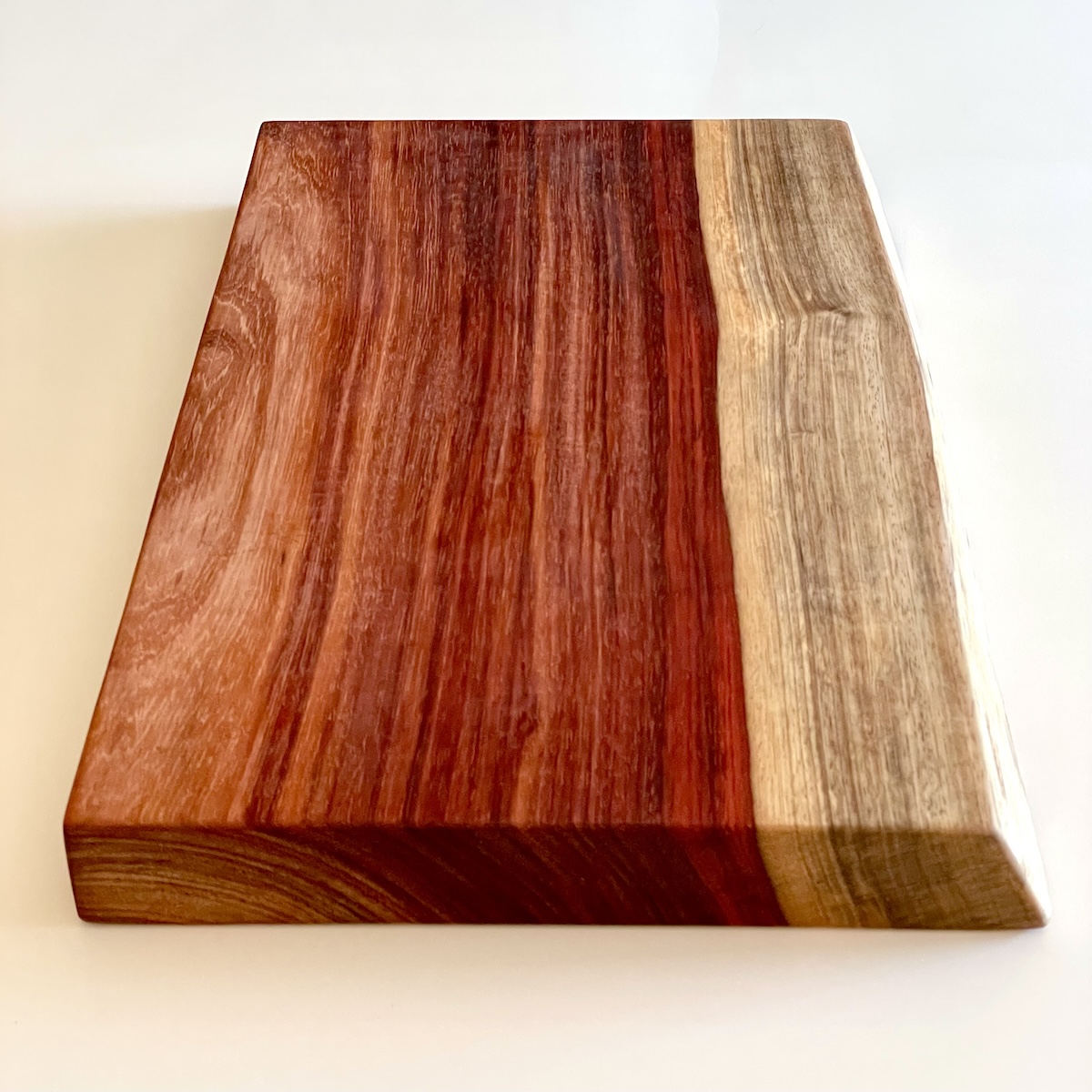 Our Live Edge chopping boards will feature no bark along the live edge, just simply the natural edge with the bark removed. For two reasons, firstly because the bark is were insects and worms live, so best it is not included in with a kitchen preparation board. The other reason is because that once the timber has been thoroughly dried in a kiln, the bark tends to fall off, if not during this process then later on once you begin using and washing the board.