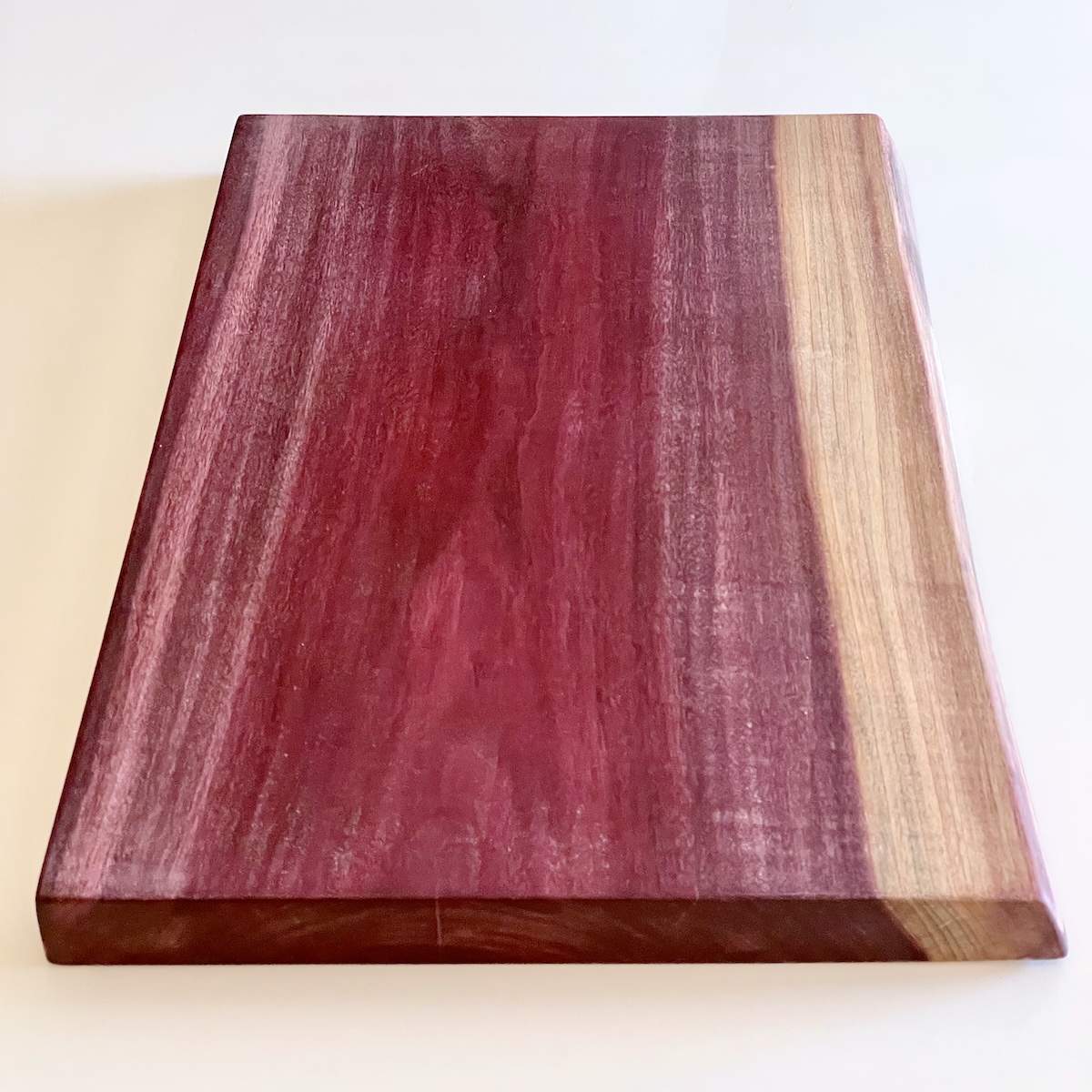 Our Live Edge chopping boards will feature no bark along the live edge, just simply the natural edge with the bark removed. For two reasons, firstly because the bark is were insects and worms live, so best it is not included in with a kitchen preparation board. The other reason is because that once the timber has been thoroughly dried in a kiln, the bark tends to fall off, if not during this process then later on once you begin using and washing the board.