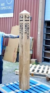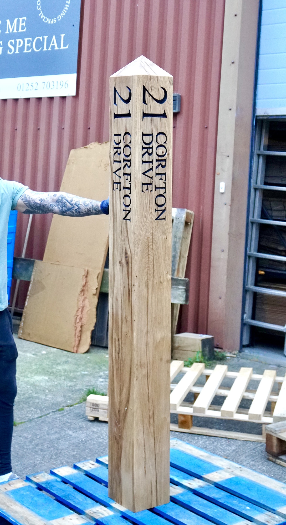 We would like to stress, these are made from Air Dried Oak and not Green Oak. The reason why this is so important is that green oak is cut straight from the tree soon after it is felled and has not been dried in any way. This will over time dry out even in outdoor conditions and will move, split and crack as it dries and becomes accustomed to its surroundings. ‘Air Dried’ oak is as it states. It has been left to dry out for several years and has acclimatised and settled into its surroundings, meaning any movement or splitting has already occurred and can be removed leaving a flawless finish. This means your beautiful wooden house signpost is already perfectly accustomed to outdoor conditions.