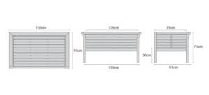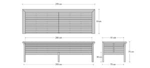 2.7 Metre – 79cm tall x 91cm deep x 2.7 metres wide – Up to 100 characters